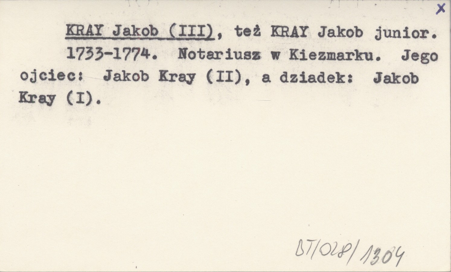 1733-1774. Notariusz w Kiezmarku. Jego ojciec: Jakob Kray (II), a dziadek: Jakob Kray (I).