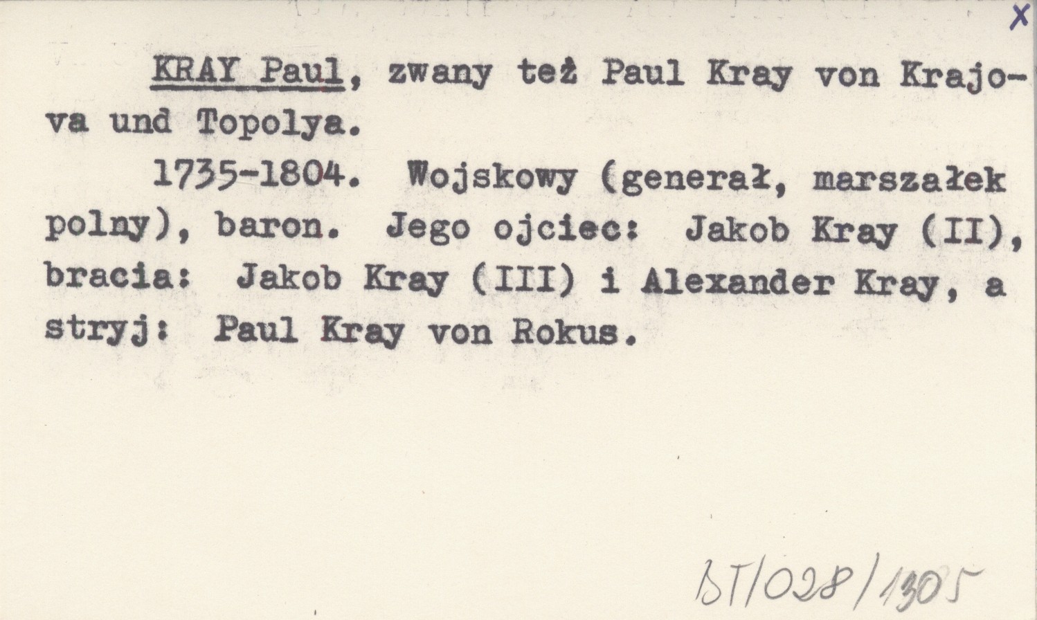 1735-1804. Wojskowy (generał, marszałek polny), baron. Jego ojciec: Jakob Kray (II), bracia: Jakob Kray (III) i Alexander Kray, a stryj: Paul Kray von Rokus.