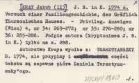 J. B. in K. [KRAY Jakob (II)] 1774 c Versuch einer Familiengeschichte, des Gräflich Thursonichen Hauses.
