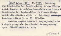 K. [KRAY Jakob (II)] 1775 Nachtrag zur Geschichte der Buchdruckerey in dem Königreich Ungarn, in welchem besonders eine kurze Geschichte der Papiermühlen in diesem Königreich mitgetheilet wird.