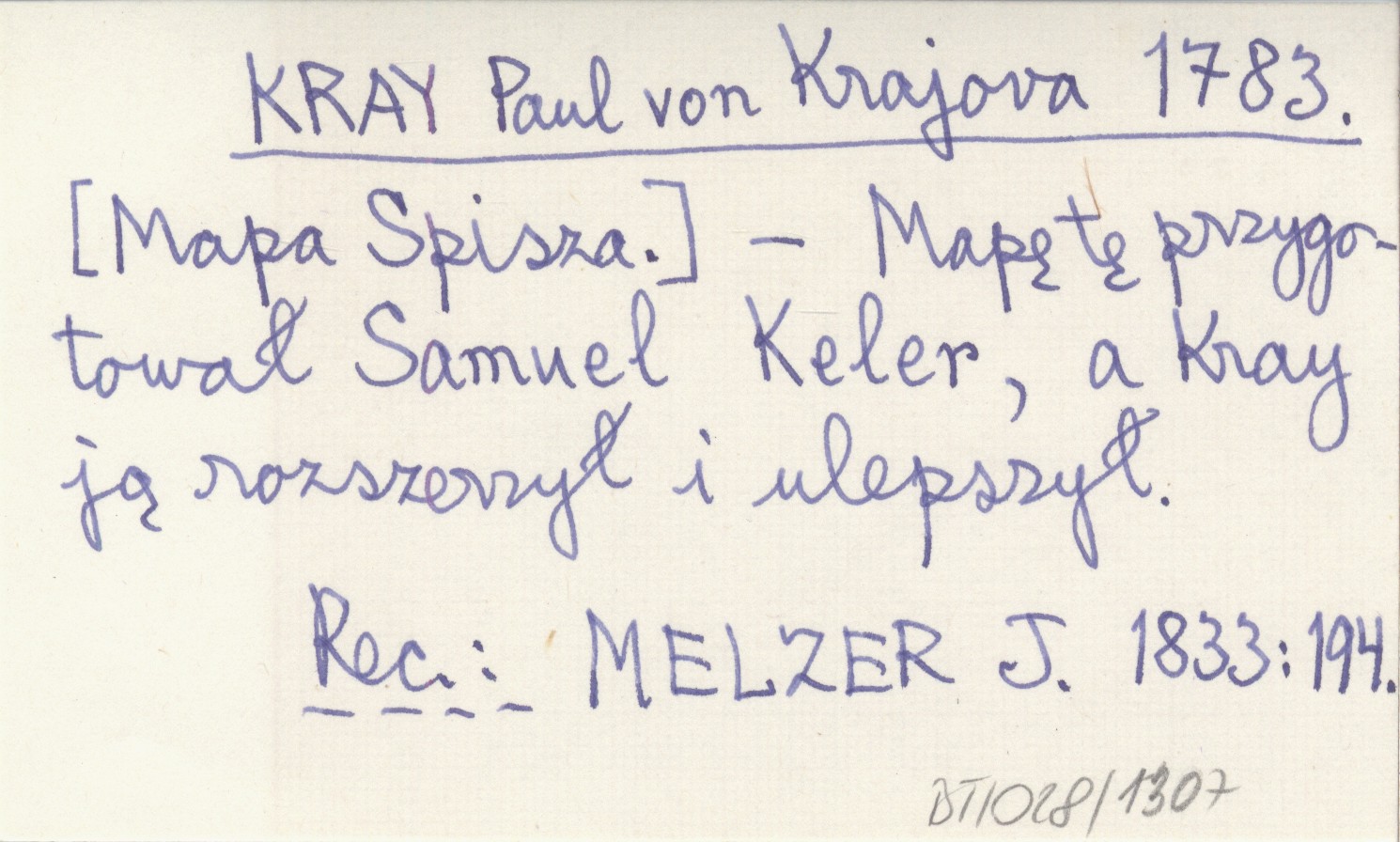 , Mapę tę przygotował Samuel Keler, a Kray ją rozszerzył i ulepszył. REC: MELZER J. 1833: 194.