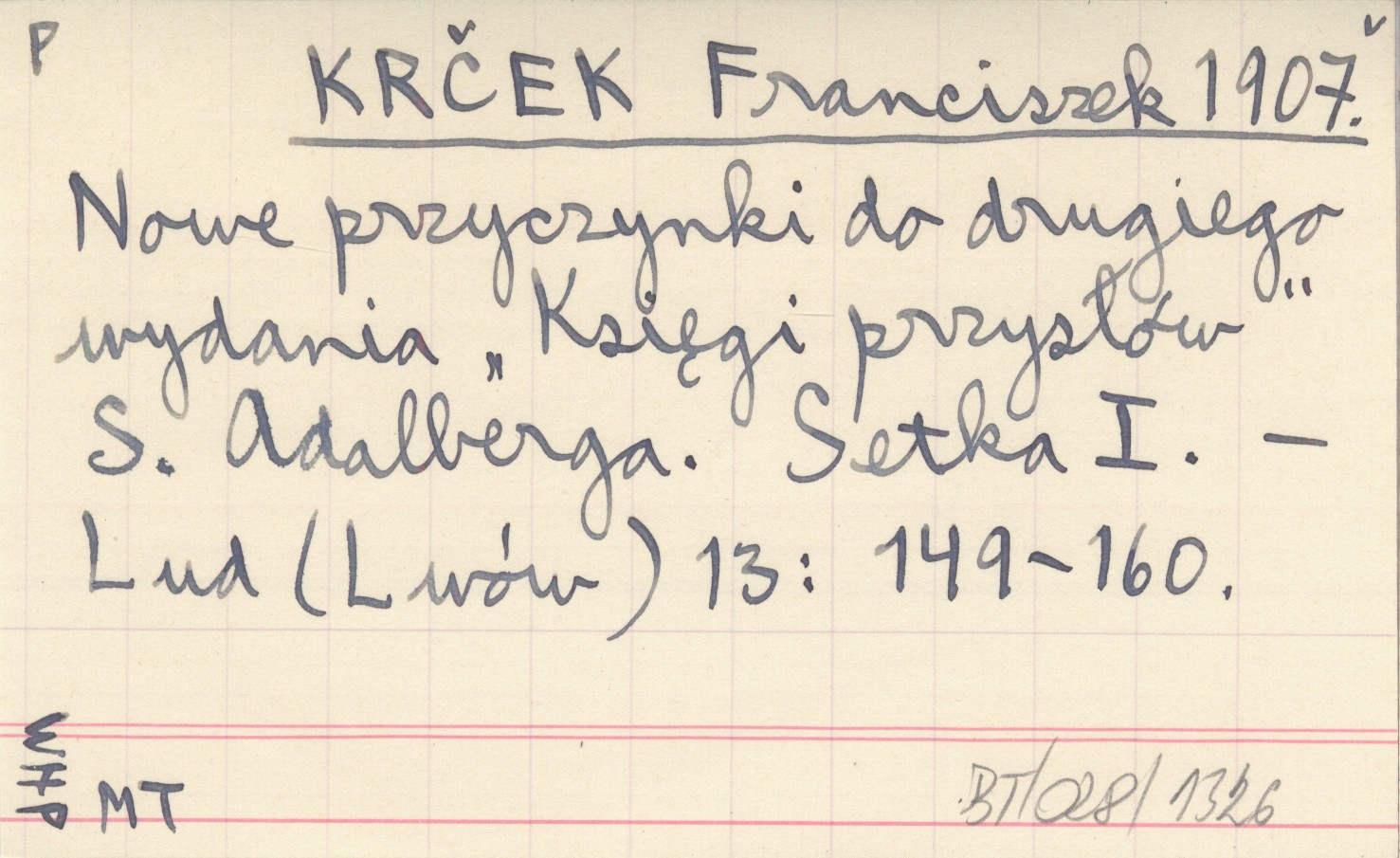KRČEK Franciszek 1907 Nowe przyczynki do drugiego wydania "Księgi przysłów" S. Adalberga. Setka I.
