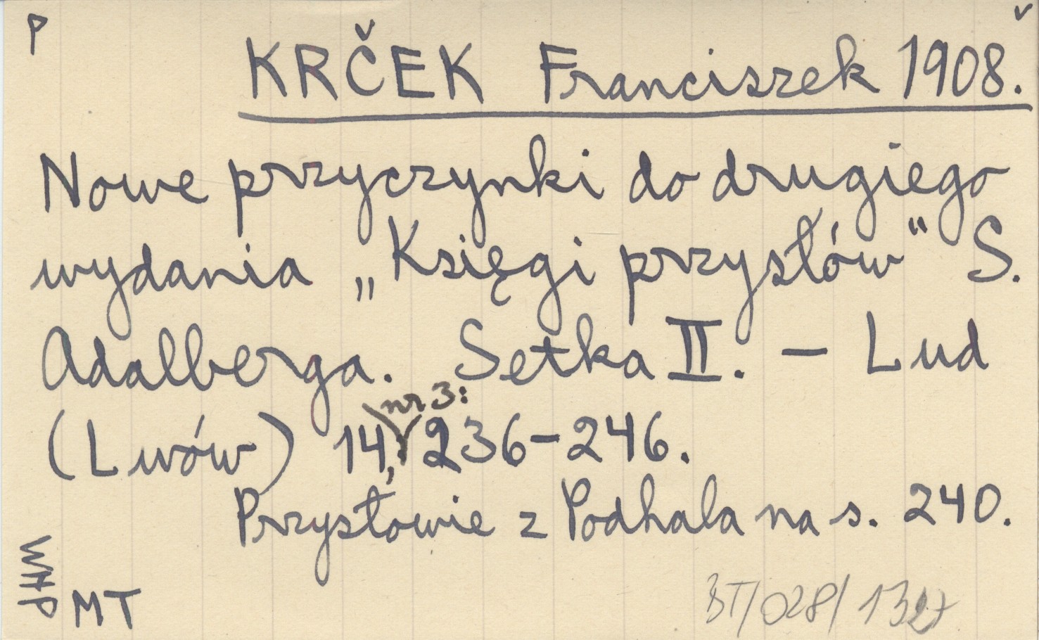 KRČEK Franciszek 1908 Nowe przyczynki do drugiego wydania "Księgi przysłów" S. Adalberga. Setka II.
