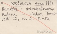 KRÈULOVÁ Anna 1962 Poznatky z Hviezdoslavovho Kubína.