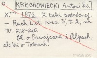 X. *** [KRECHOWIECKI Antoni ks.] 1876 Z teki podróżnej.