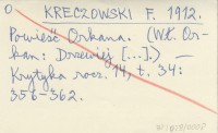 KRECZOWSKI F. 1912 Powieść Orkana. (Wł. Orkan: Drzewiej [...]).
