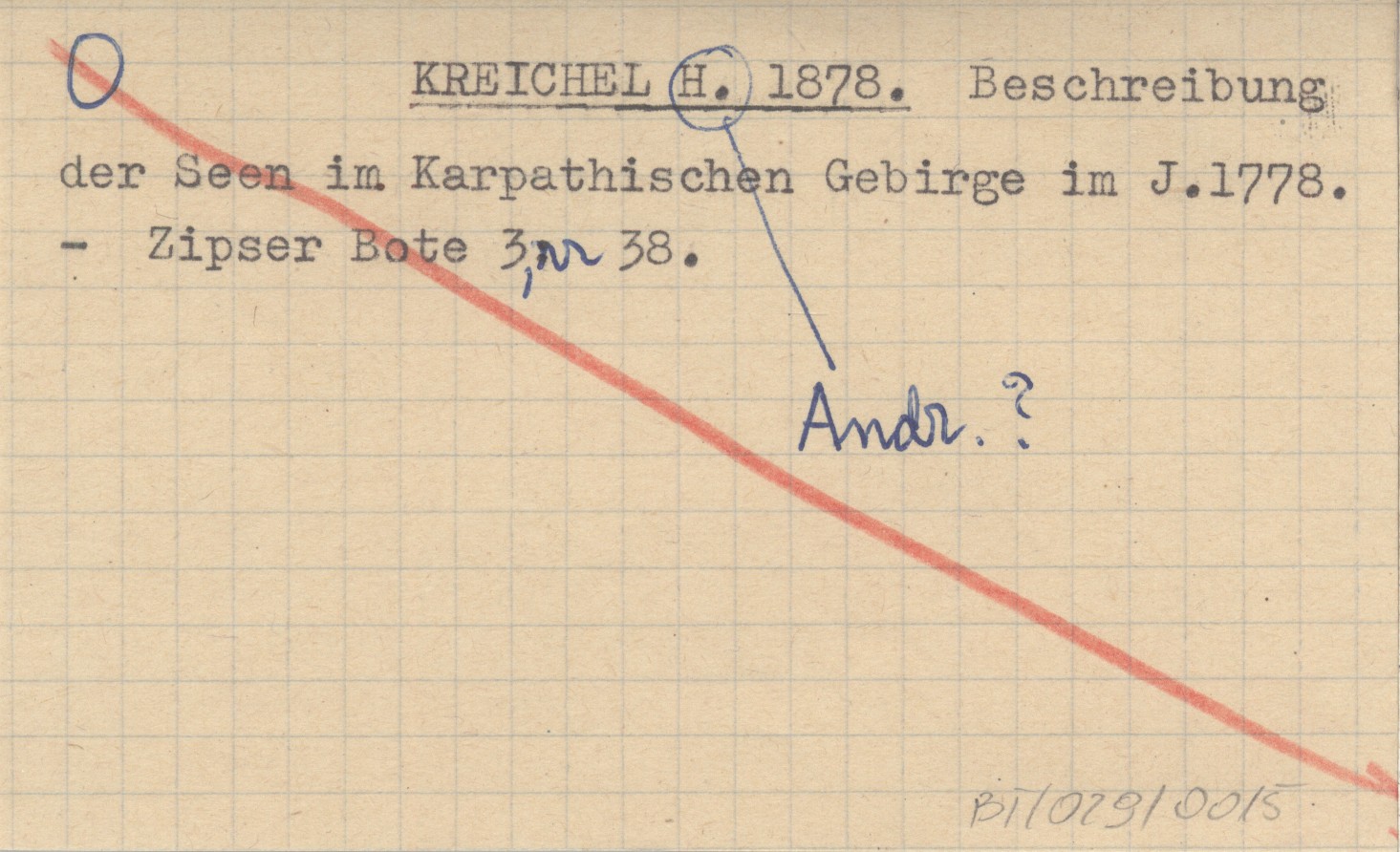KREICHEL H. (Andr.?) 1878 Beschreibung der Seen im Karpathischen Gebirge im J. 1778.