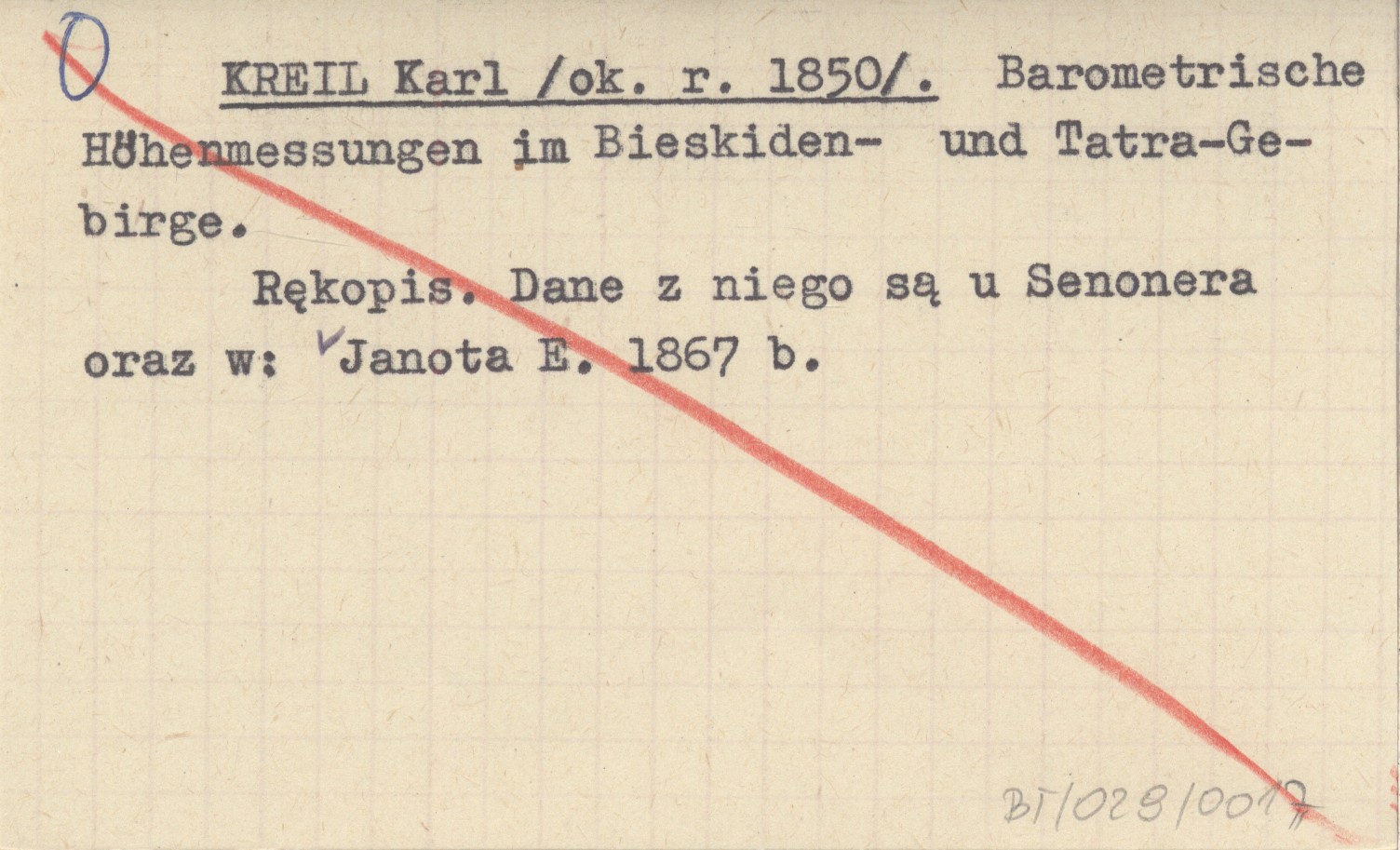 KREIL Karl ok. 1850 Barometrische Höhenmessungen im Bieskiden- und Tatra-Gebirge.