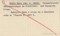 KREIL Karl ok. 1850 Barometrische Höhenmessungen im Bieskiden- und Tatra-Gebirge.