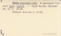 KREJA Bogus³aw 1958 O gwarowych formach jeji, jejich.