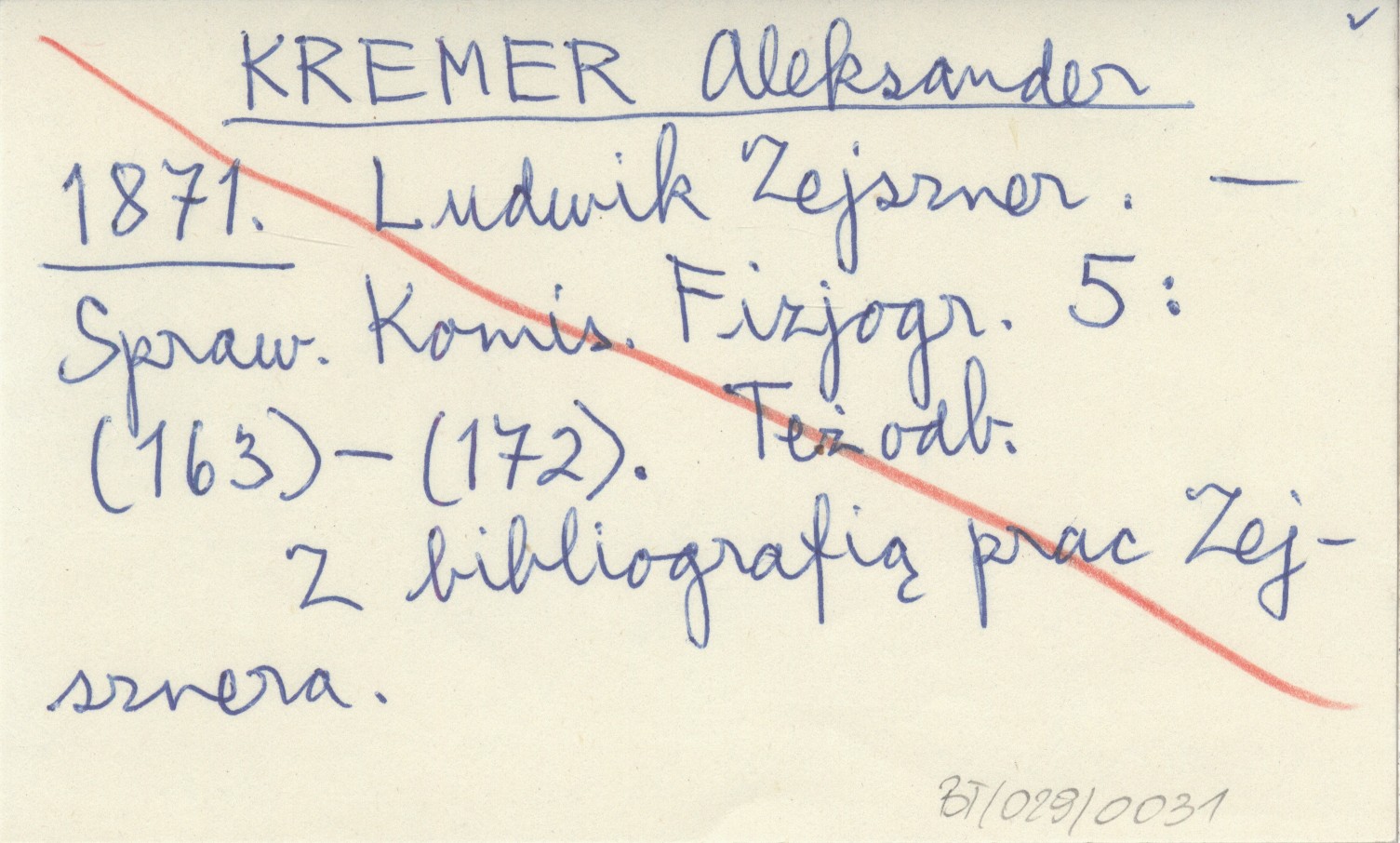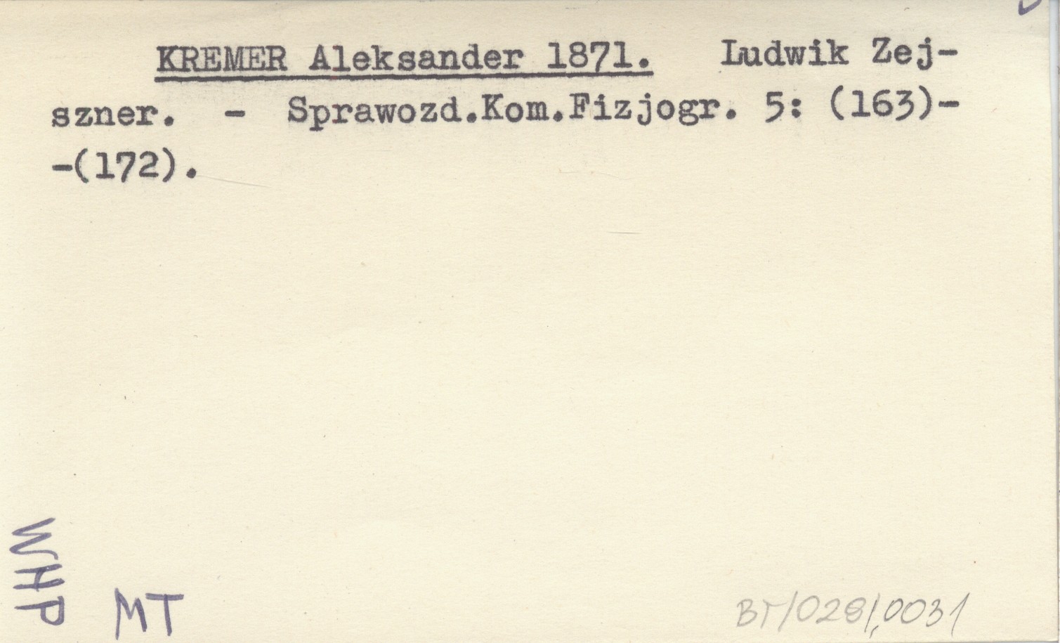 Sprawozdanie Komisji Fizjograficznej, 5: [163]-[172]. Z bibliografią prac Zejsznera. Też odb.
