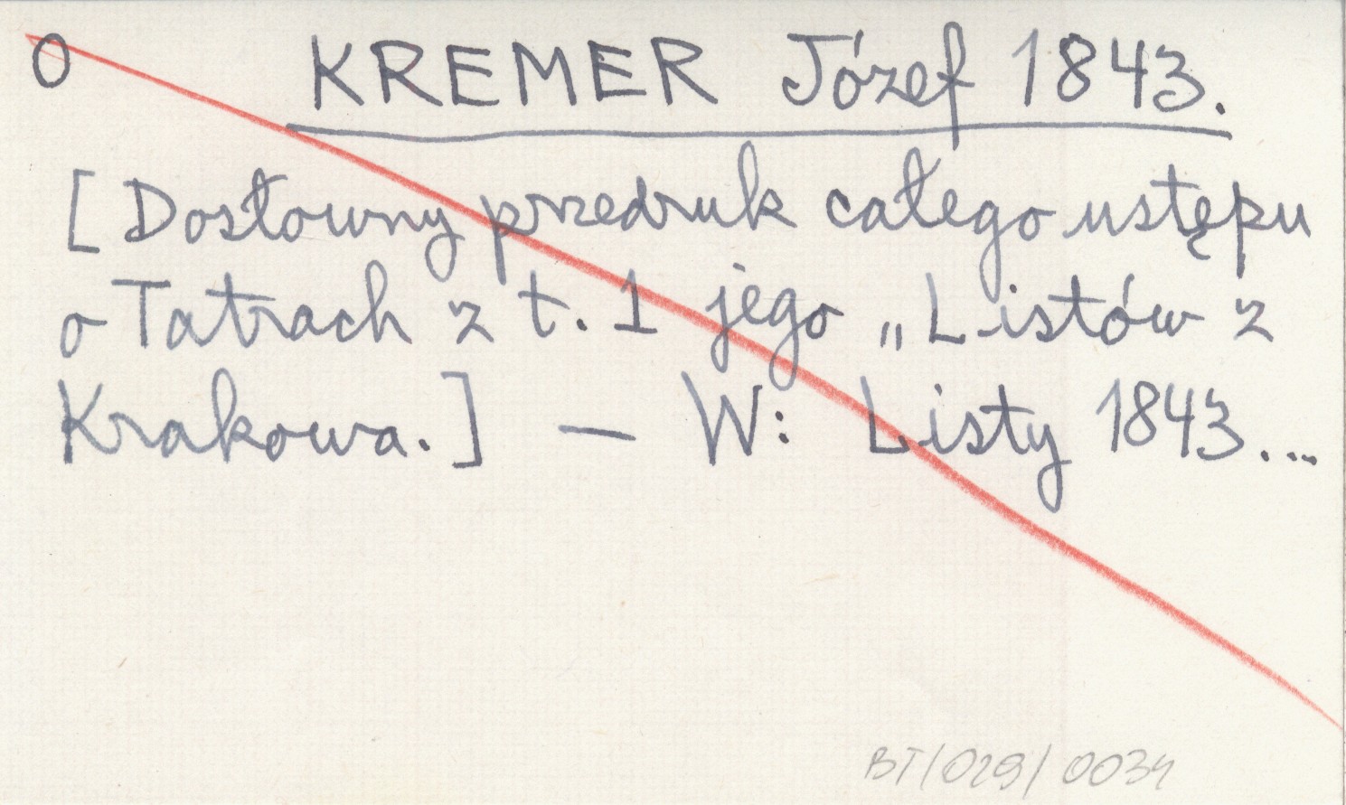 KREMER Józef 1843 [Dosłowny przedruk całego ustępu o Tatrach z t. 1 jego "Listów z Krakowa".]