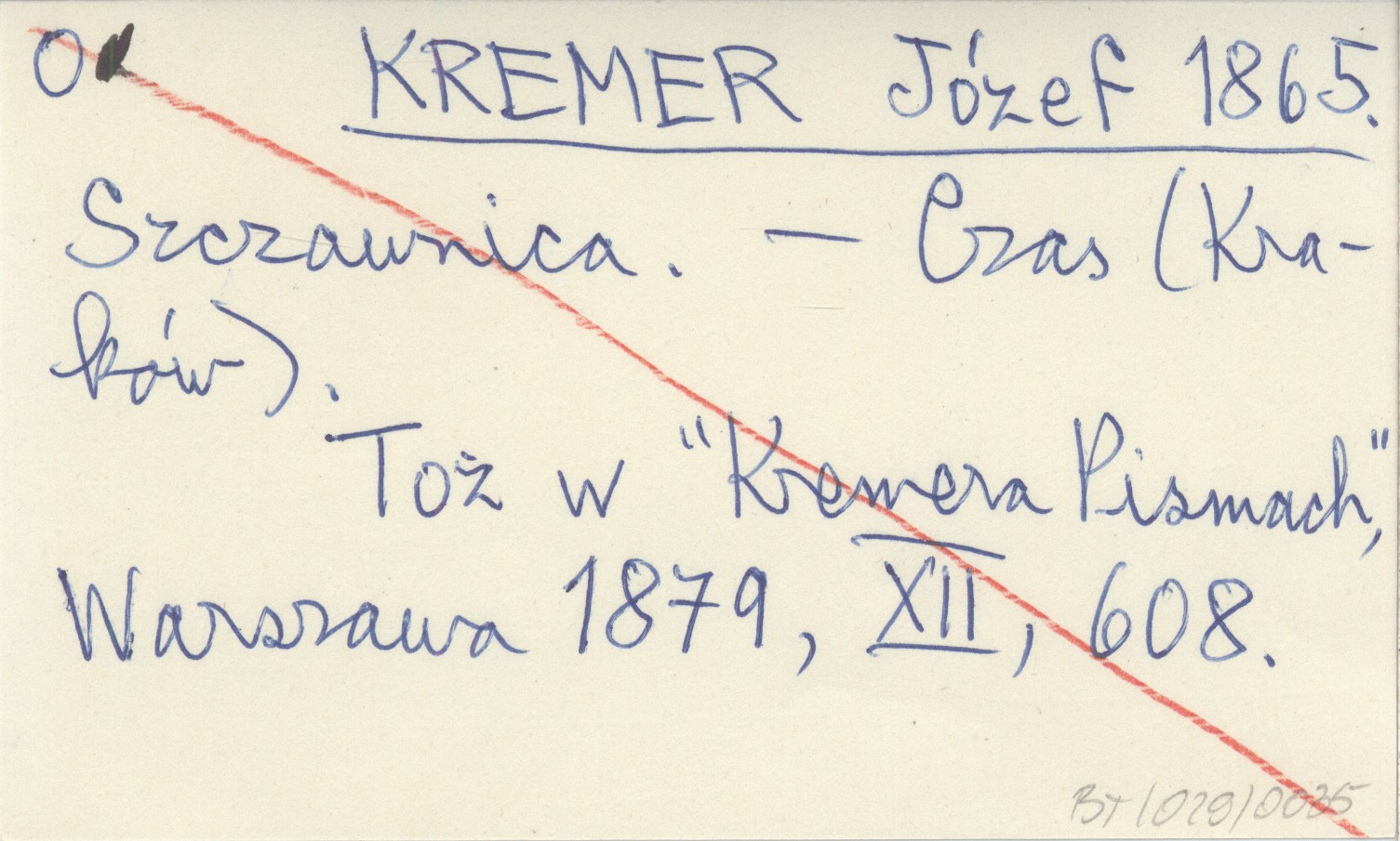 Czas (Kraków) , Toż w "Kremera Pismach", Warszawa 1879, XII, 608.