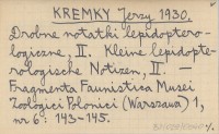 KREMKY Jerzy 1930 Drobne notatki lepidopterologiczne, II. Kleine lepidopterologische Notizen, II.