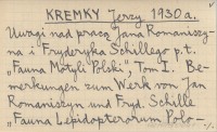 KREMKY Jerzy 1930 a Uwagi nad pracą Jana Romaniszyna i Fryderyka Schillego p.t. "Fauna Motyli Polski", Tom I. Bemerkungen zum Werk von Jan Romaniszyn und Fryd. Schille "Fauna Lepidopterorum Poloniae", T. I.