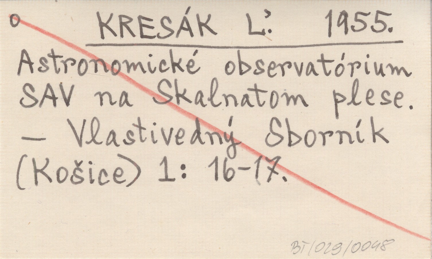 KRESÁK Ľ. 1955 Astronomické observatórium SAV na Skalnatom plese.