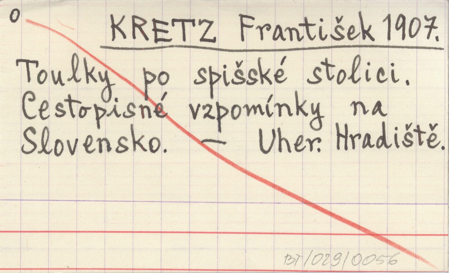 KRETZ Frantiąek 1907 Toulky po spiąské stolici. Cestopisné vzpomínky na Slovensko.