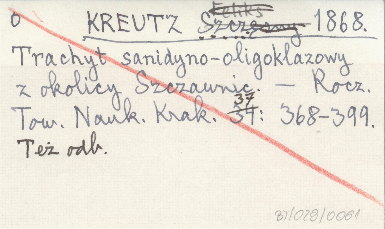 KREUTZ 1868 Trachyt sanidyno-oligoklazowy z okolicy Szczawnic.