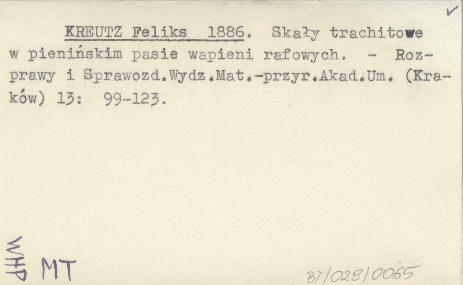 KREUTZ Feliks 1886 Skały trachitowe w pienińskim pasie wapieni rafowych.