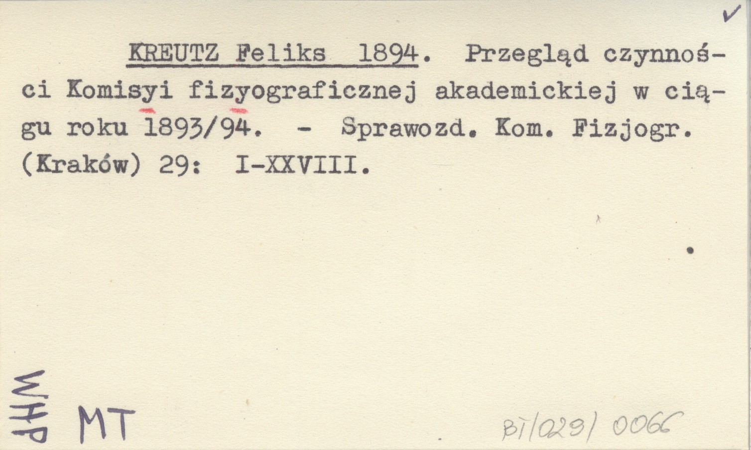 KREUTZ Feliks 1894 Przegląd czynności Komisyi fizyograficznej akademickiej w ciągu roku 1893/94.