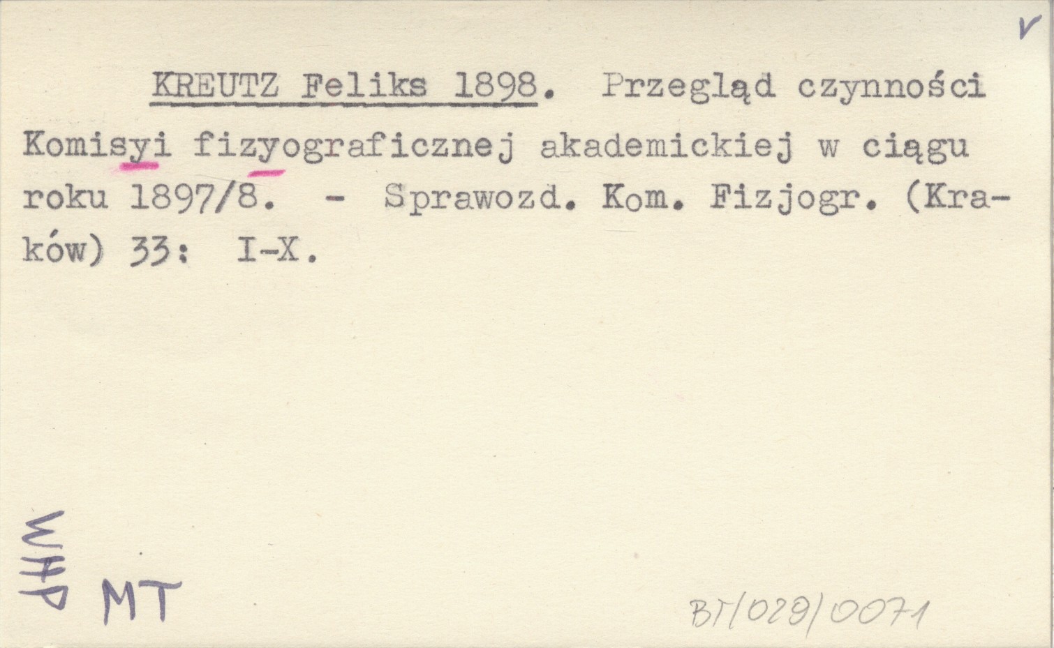 KREUTZ Feliks 1898 Przegląd czynności Komisyi fizyograficznej akademickiej w ciągu roku 1897/8.