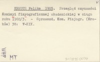 KREUTZ Feliks 1905 Przegląd czynności Komisyi fizyograficznej akademickiej w ciągu roku 1902/3.