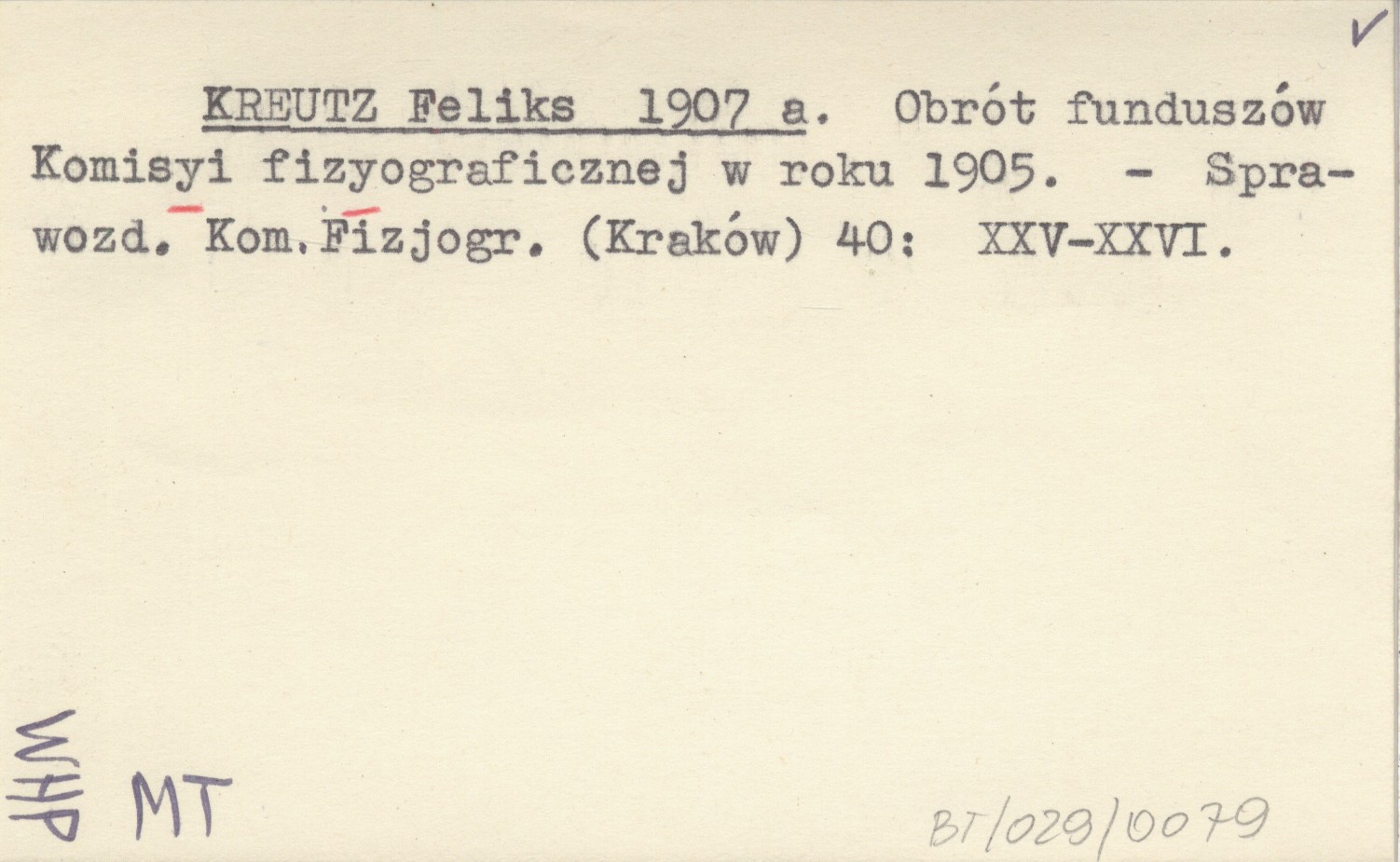 KREUTZ Feliks 1907 a Obrót funduszów Komisyi fizyograficznej w roku 1905.