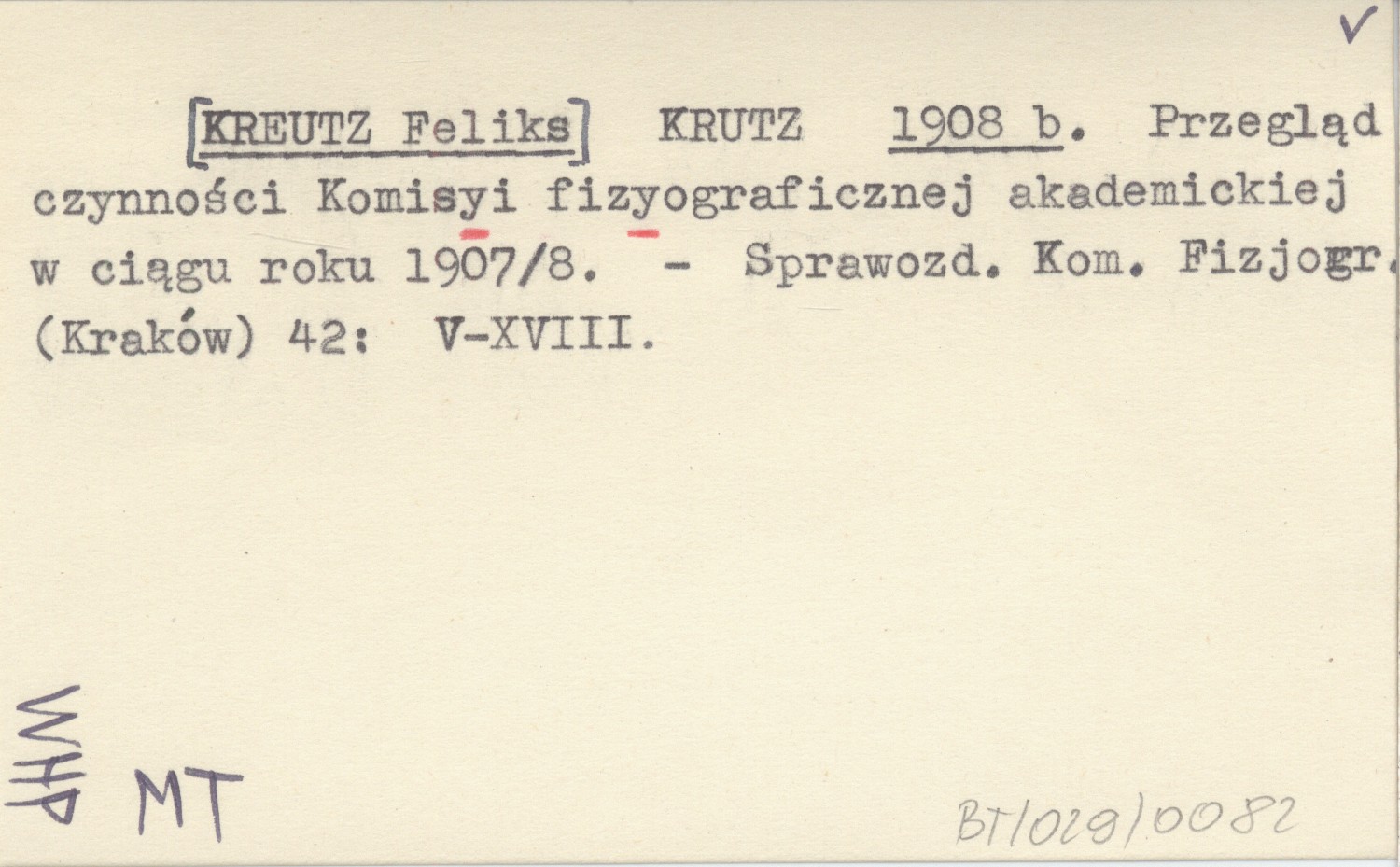 KRUTZ [KREUTZ Feliks] 1908 b Przegląd czynności Komisyi fizyograficznej akademickiej w ciągu roku 1907/8.