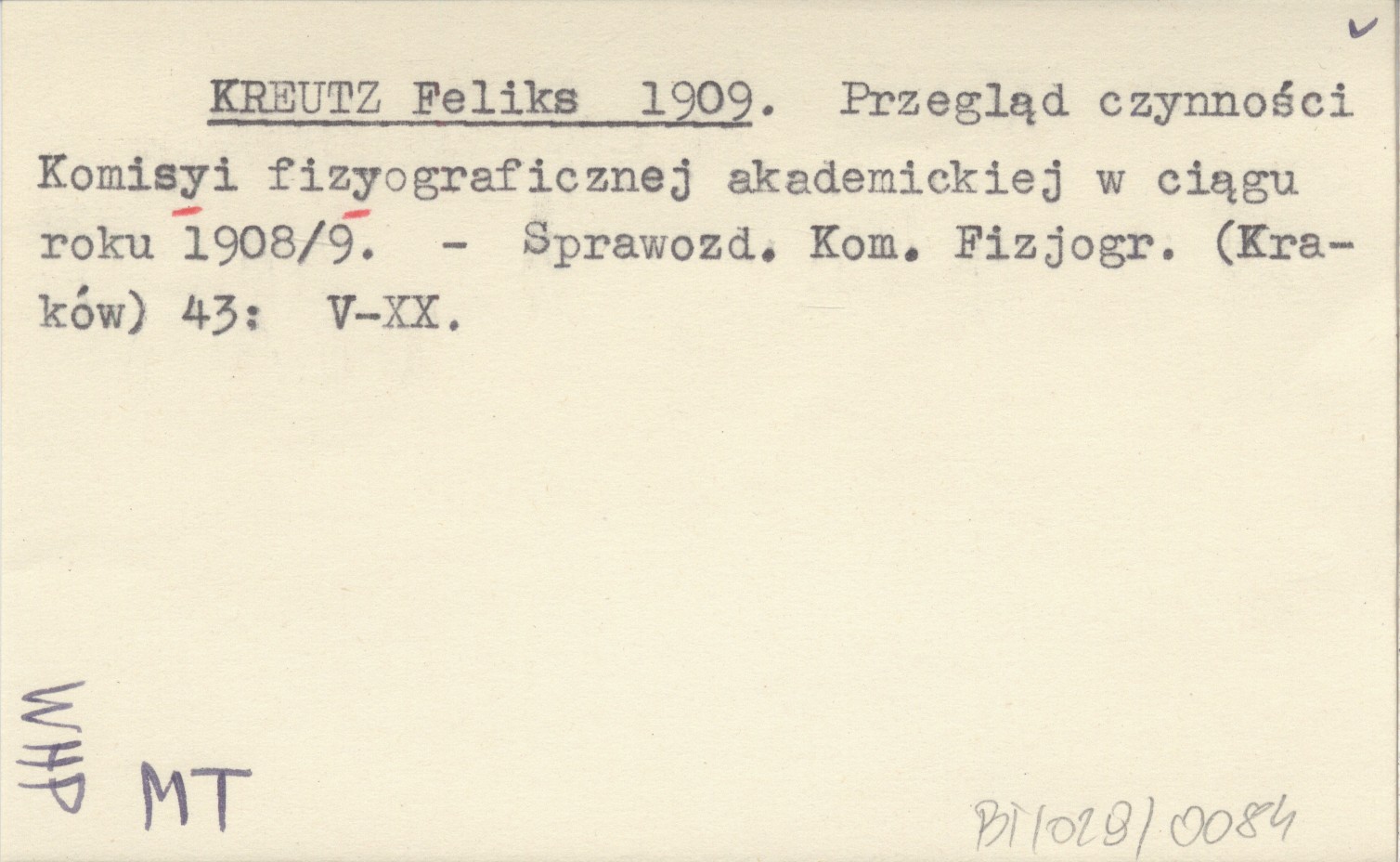KREUTZ Feliks 1909 Przegląd czynności Komisyi fizyograficznej akademickiej w ciągu roku 1908/9.