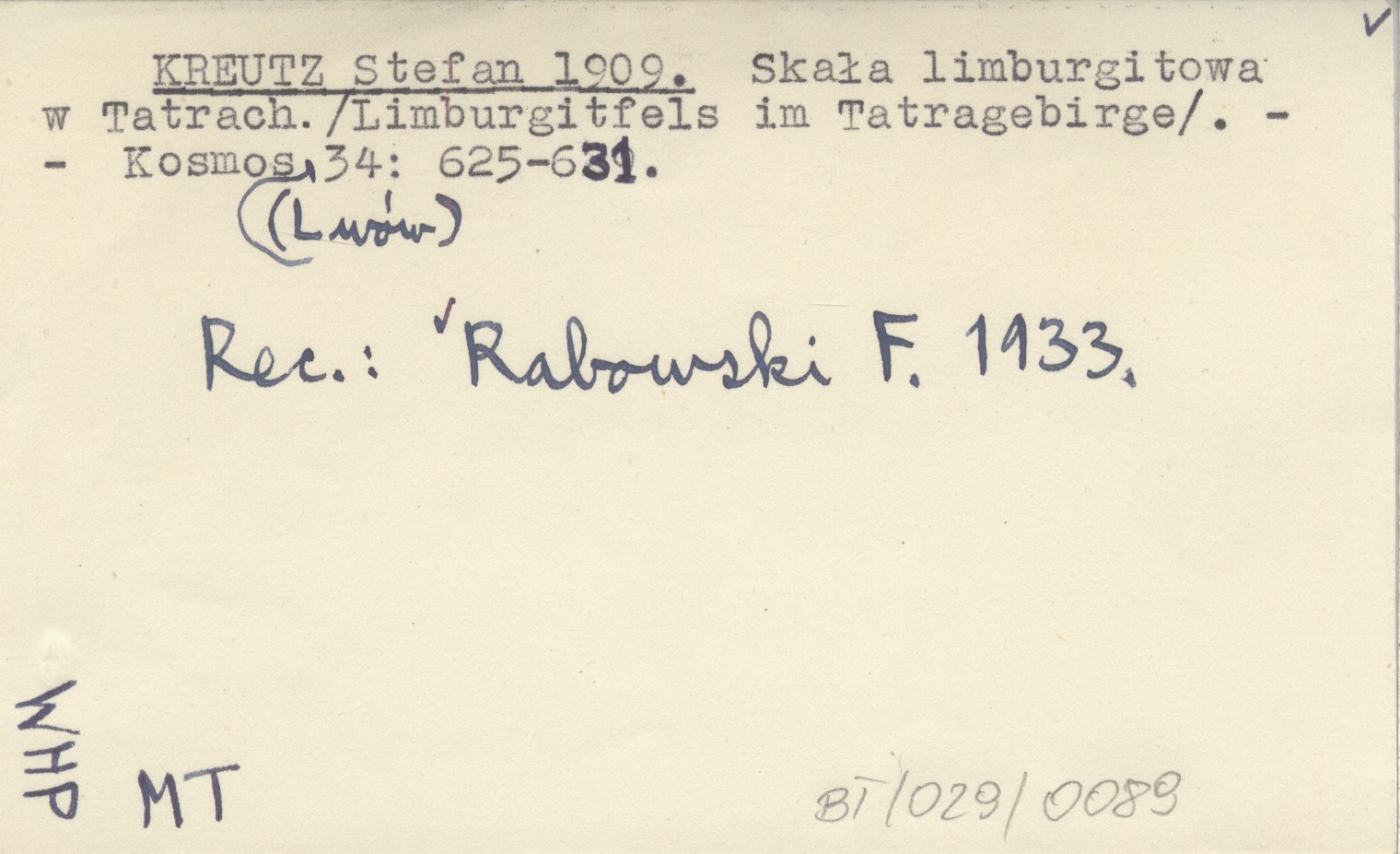 Kosmos (Lwów) , 34: 625-631. REC: RABOWSKI F. 1933