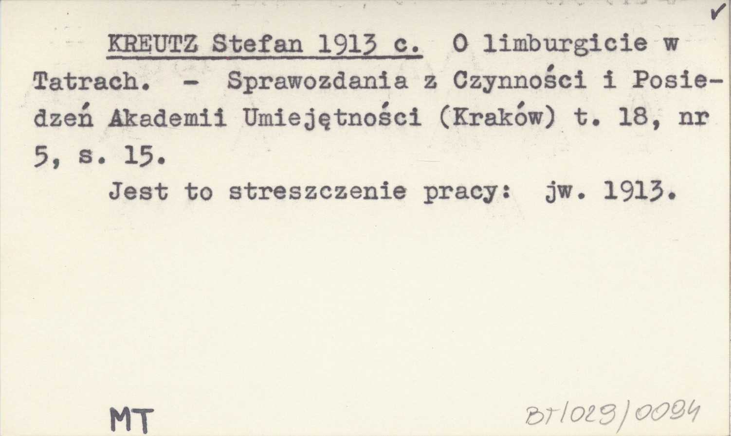 Sprawozdanie z Czynności i Posiedzeń Akademii Umiejętności (Kraków) , T. 18, nr 5: 15. Jest to streszczenie pracy: jw. 1913.