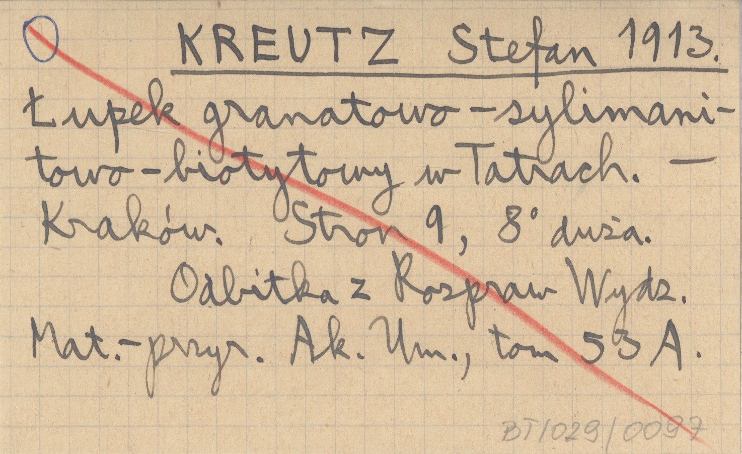 KREUTZ Stefan 1913 Łupek granitowo-sylimanitowo-biotytowy w Tatrach.