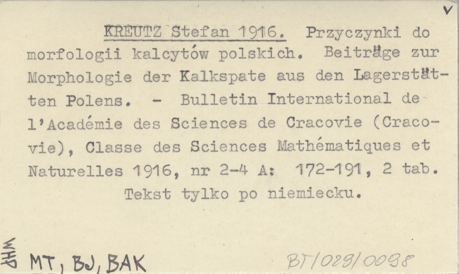 KREUTZ Stefan 1916 Przyczynki do morfologii kalcytów polskich. Beiträge zur Morphologie der Kalkspate aus den Lagerstätten Polens.
