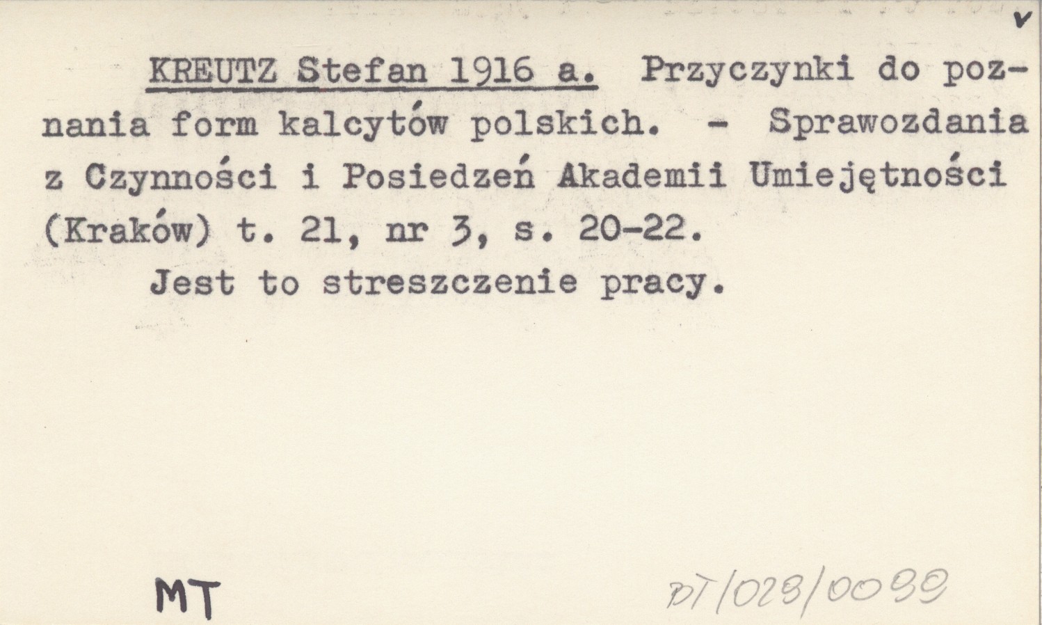 KREUTZ Stefan 1916 a Przyczynki do poznania form kalcytów polskich.