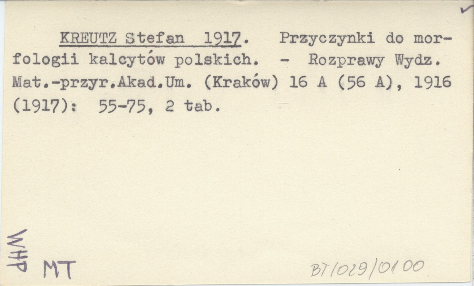 KREUTZ Stefan 1917 Przyczynki do morfologii kalcytów polskich.