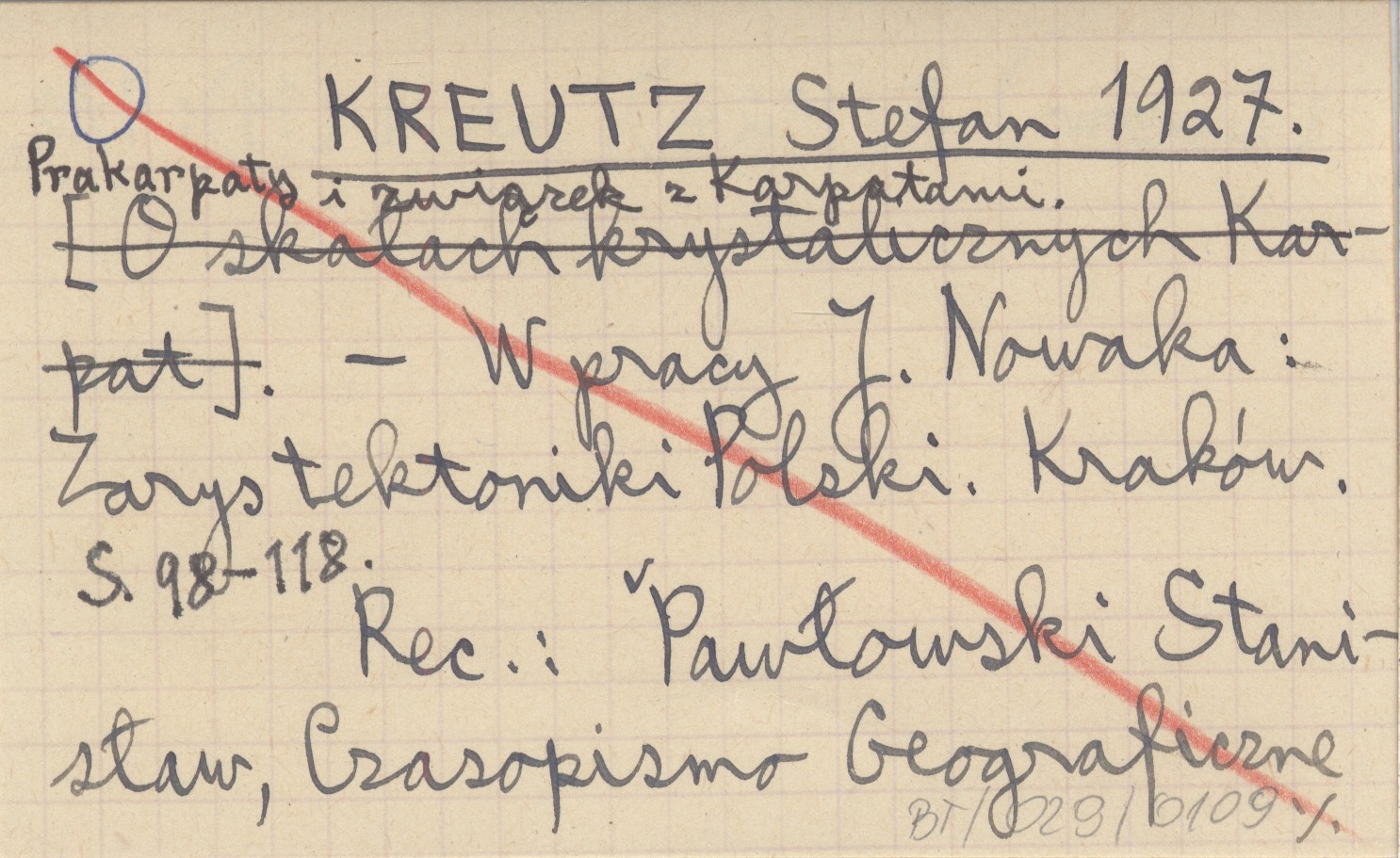 J. Nowak: Zarys tektoniki Polski. Kraków , S. 98-118. REC: PAWŁOWSKI Stanisław, Czasopismo Geograficzne (Lwów) 5 (1927), nr 4 (19): 172.