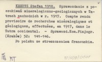 KREUTZ Stefan 1918 Sprawozdanie z poszukiwań mineralogiczno-geologicznych w Tatrach zachodnich w r. 1917. Compte rendu provisoire de recherches minéralogiques et géologiques, effectuées, en 1917, dans le Tatra occidental.