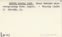KREUTZ Stefan 1925 Prace Zakładu mineralogicznego Uniwersytetu Jagiellońskiego.