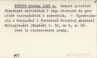 KREUTZ Stefan 1927 a Granit polskich Prakarpat zachodnich i jego stosunek do granitów tatrzańskich i sudeckich.
