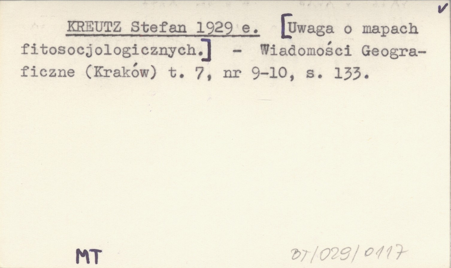 KREUTZ Stefan 1929 e [Uwaga o mapach fitosocjologicznych.]