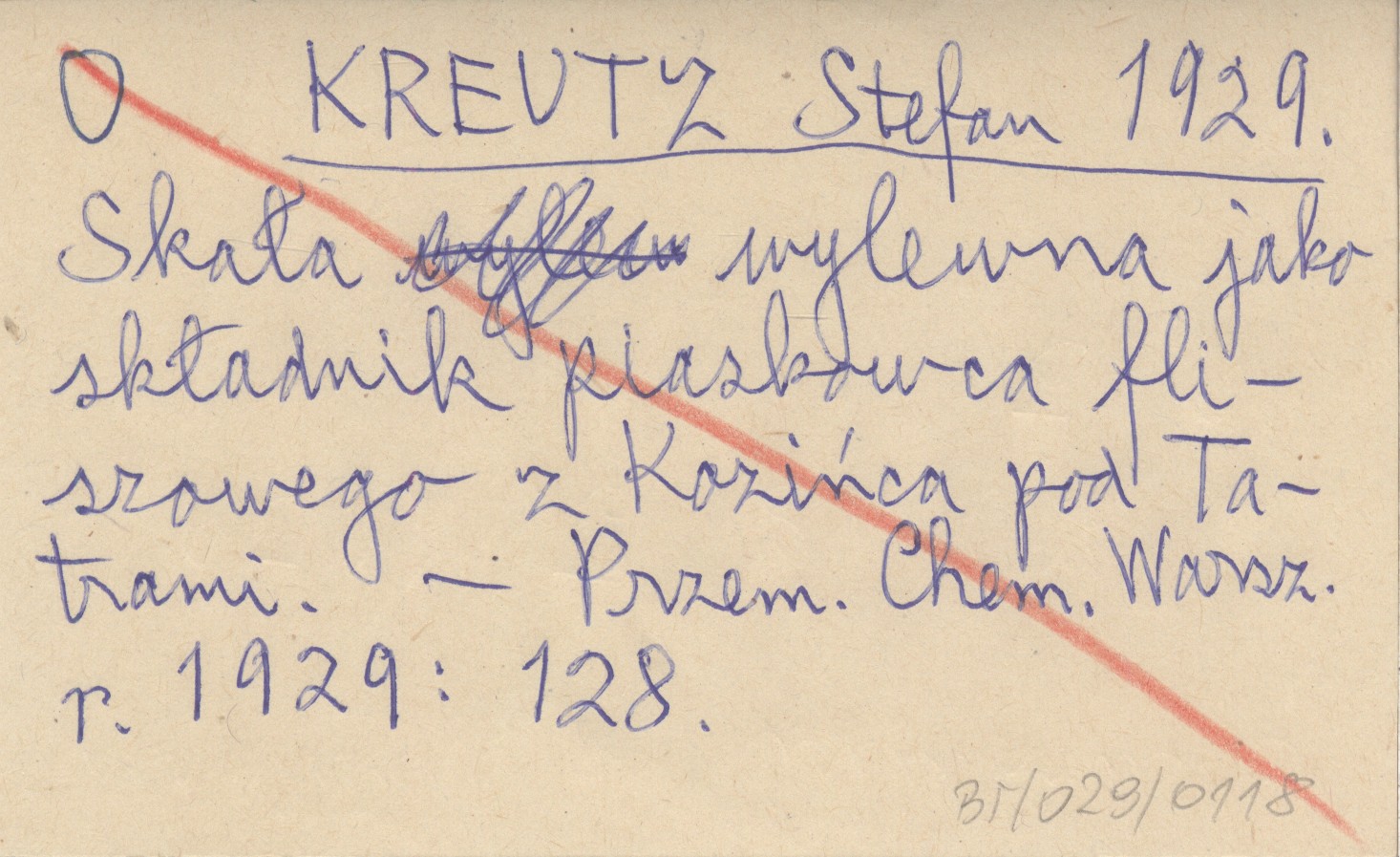 KREUTZ Stefan 1929 Skała wylewna jako składnik piaskowca fliszowego z Kozińca pod Tatrami.
