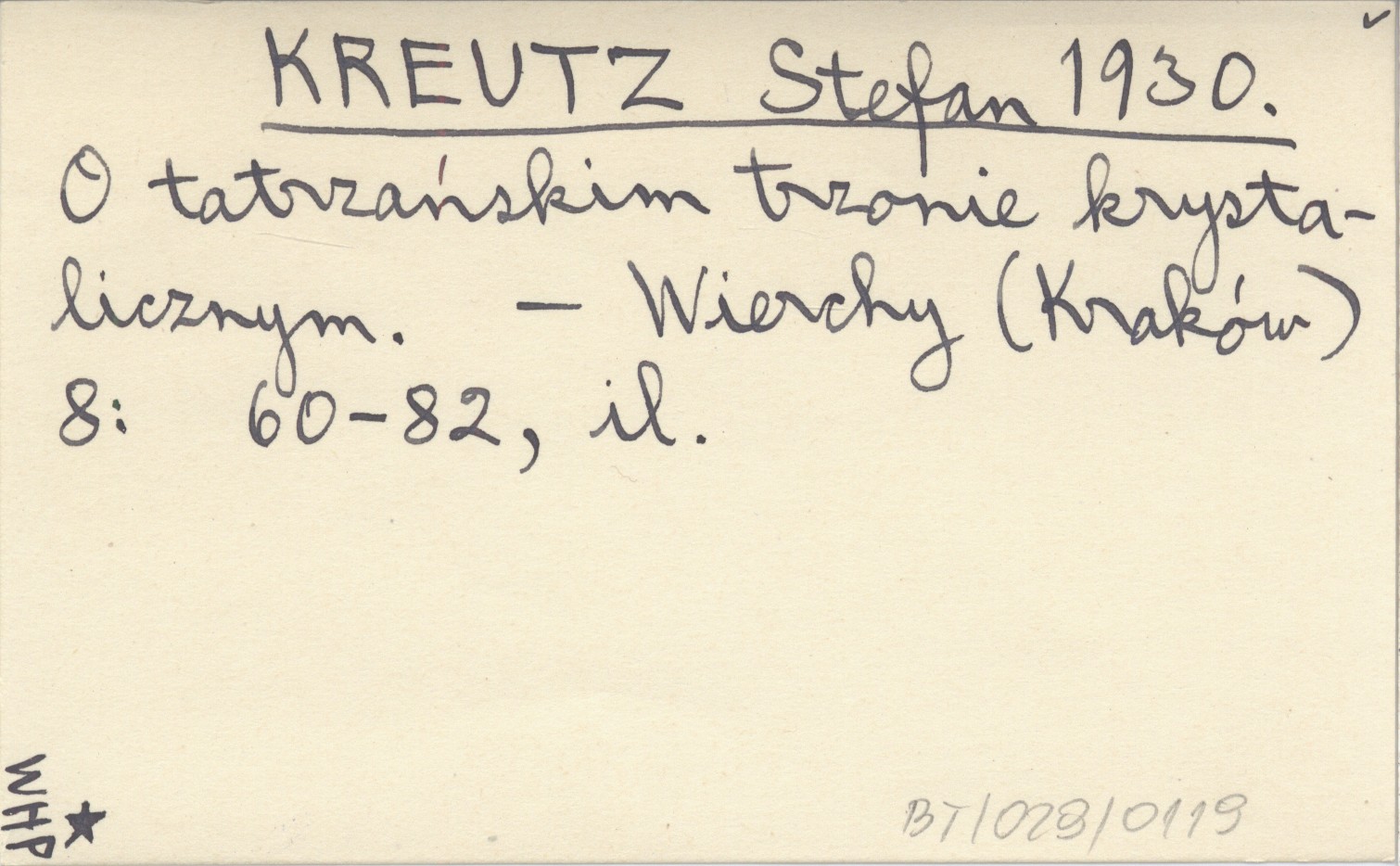 KREUTZ Stefan 1930 O tatrzańskim trzonie krystalicznym.