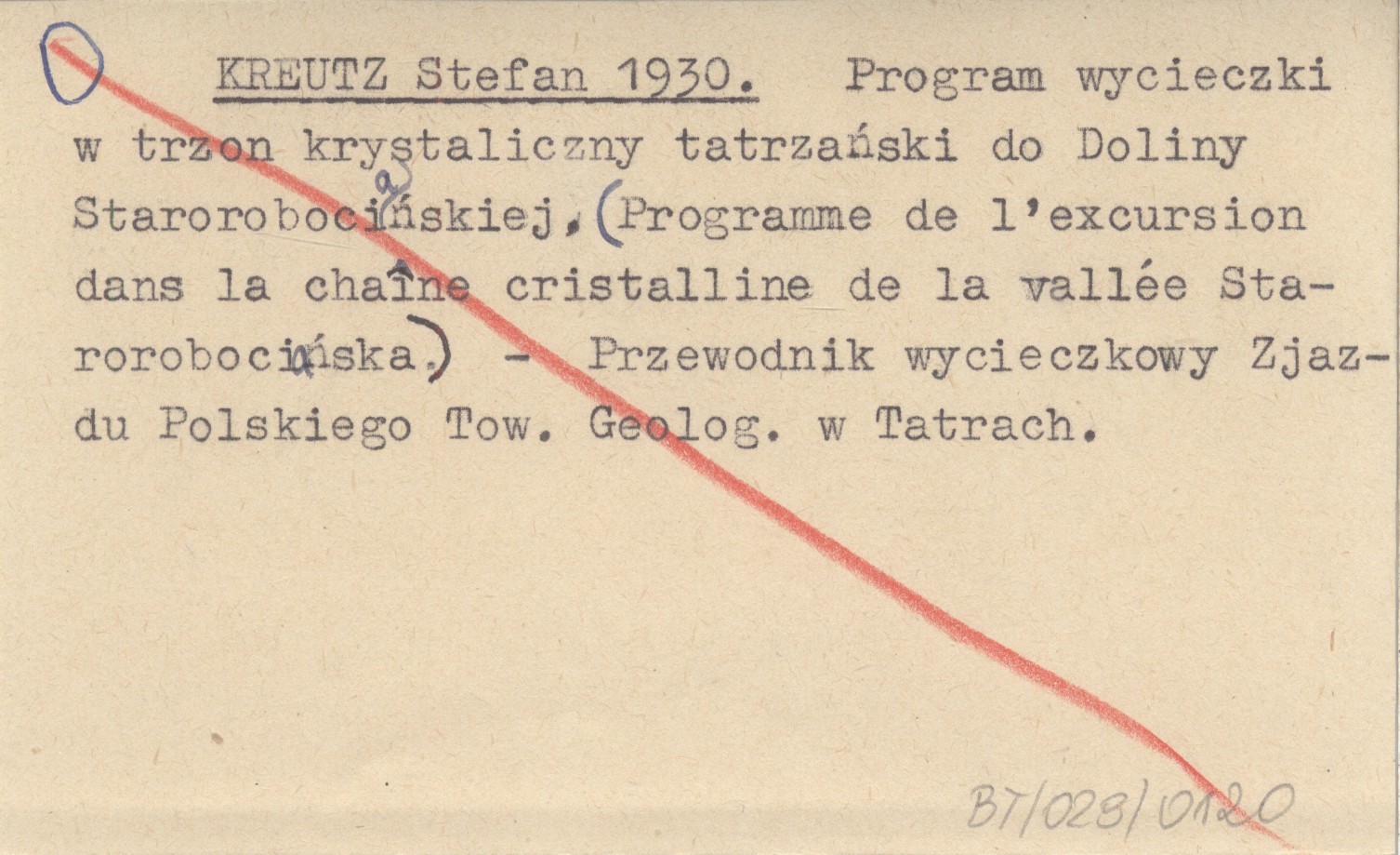 KREUTZ Stefan 1930 Program wycieczki w trzon krystaliczny tatrzański do Doliny Starorobociańskiej. (Programme de l'excursion dans la chaîne cristalline de la vallée Starorobociańska.)