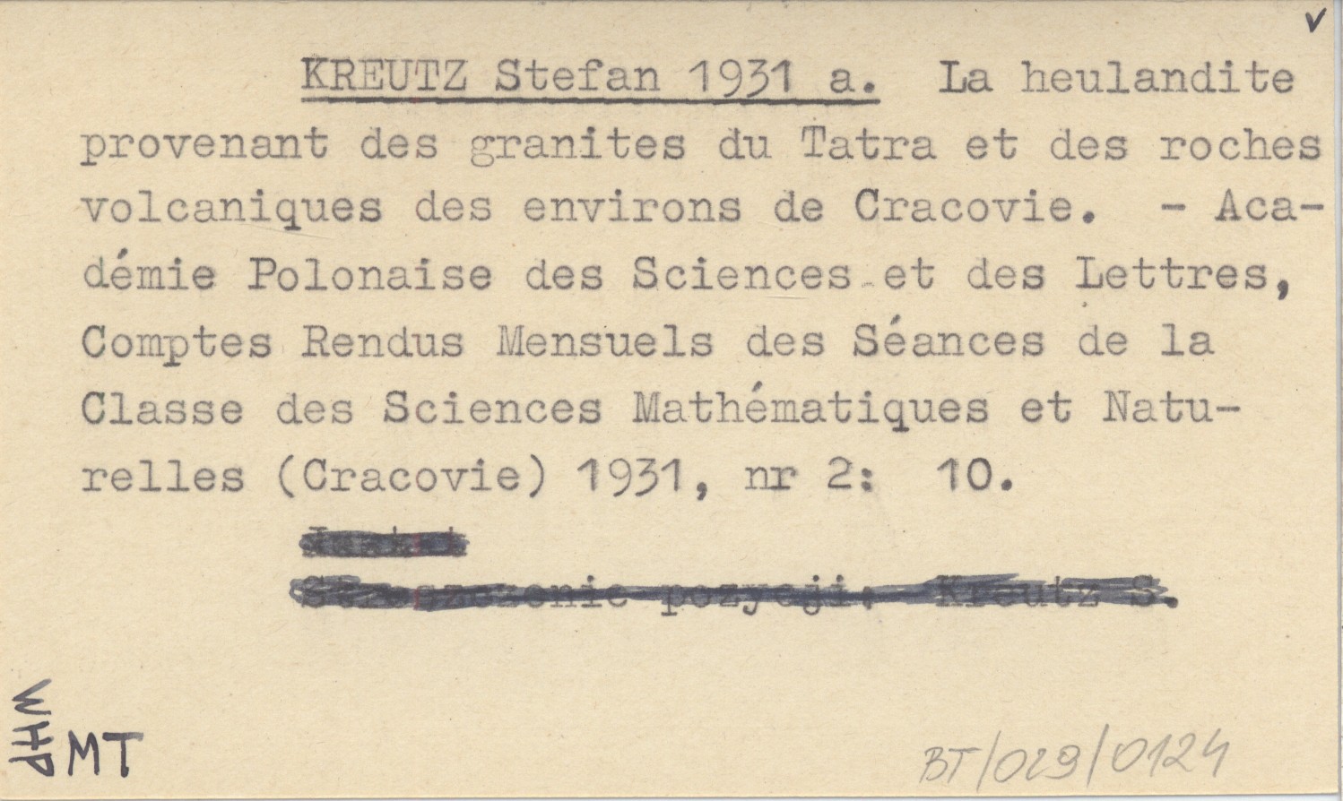 KREUTZ Stefan 1931 a La heulandite provenant des granites du Tatra et des roches volcaniques des environs de Cracovie.