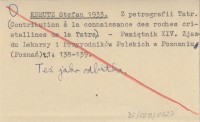 KREUTZ Stefan 1930 Z petrografii i mineralogii Tatr.