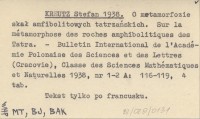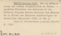 KREUTZ Stefan 1938 O metamorfozie skał amfibiotycznych tatrzańskich. Sur la métamorphose des roches amphibiolitiques des Tatra.