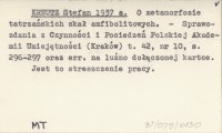 KREUTZ Stefan 1937 a O metamorfozie tatrzańskich skał amfibiolitowych.