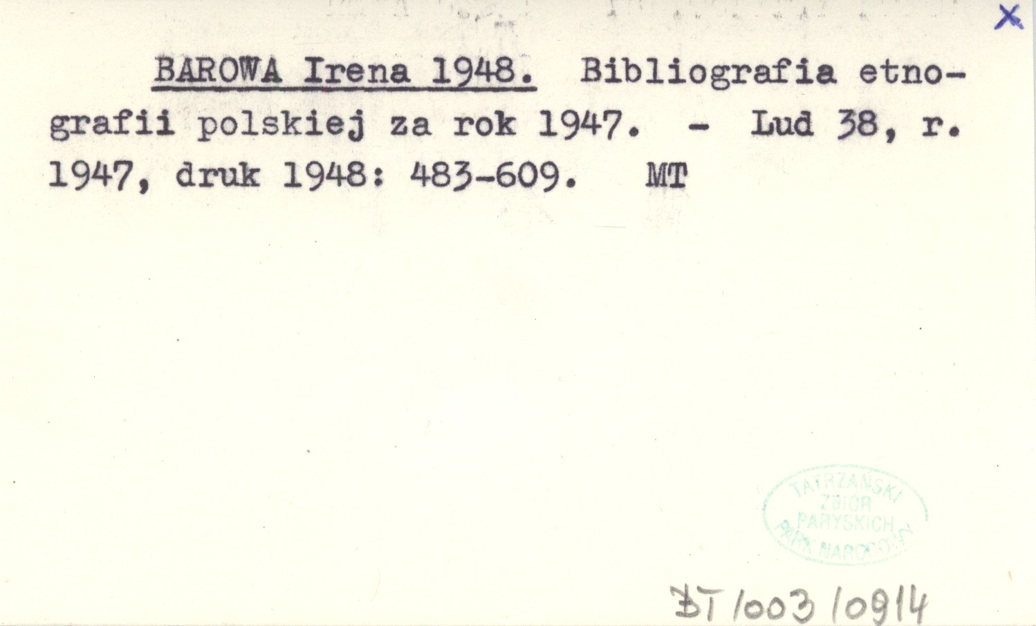 BAROWA Irena 1948 Bibliografia etnografii polskiej za rok 1947.