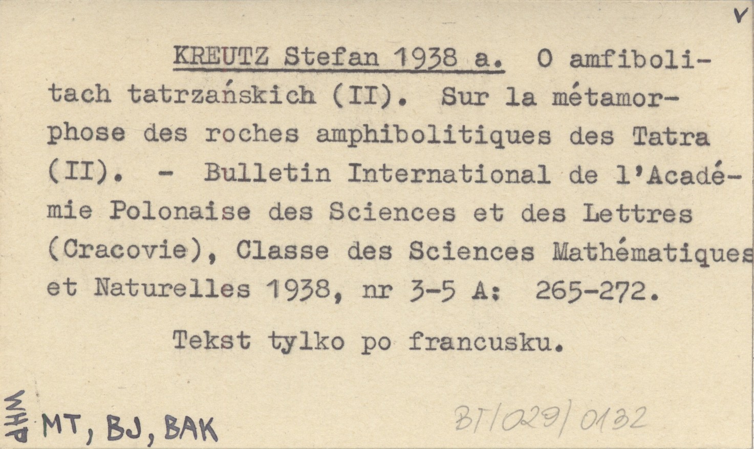 KREUTZ Stefan 1938 a O amfibiolitach tatrzańskich (II). Sur la métamorphose des roches amphibolitiques des Tatra (II).