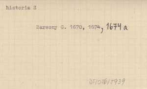 BARSONY Georgius 1670 [Pismo z dnia 3 XII 1670 do Stanisława Lubomirskiego w sprawach kościelnych na Spiszu.]